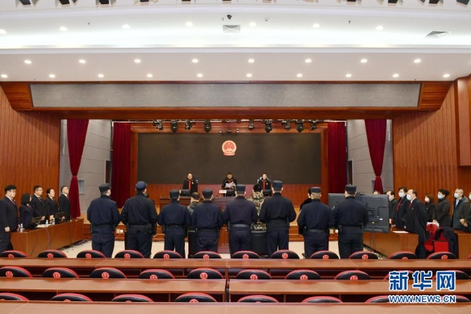 2020年11月20日,黑龙江省22家法院对38件黑恶势力和“保护伞”案件集中宣判,涉案的227名被告人被判处刑罚,最高被判处无期徒刑。这是在黑龙江省牡丹江市中级人民法院拍摄的宣判现场。新华社发