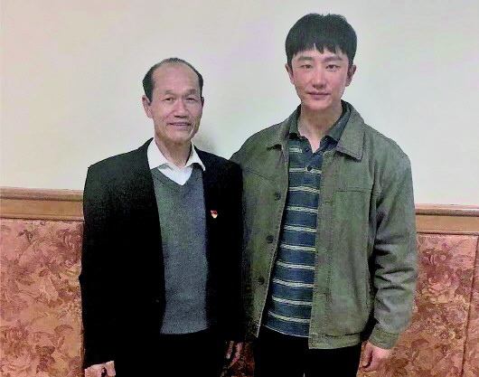 《山海情》男主马得福原型人物谢兴昌与马得福扮演者黄轩合影。受访者供图