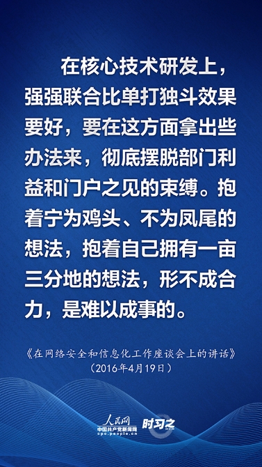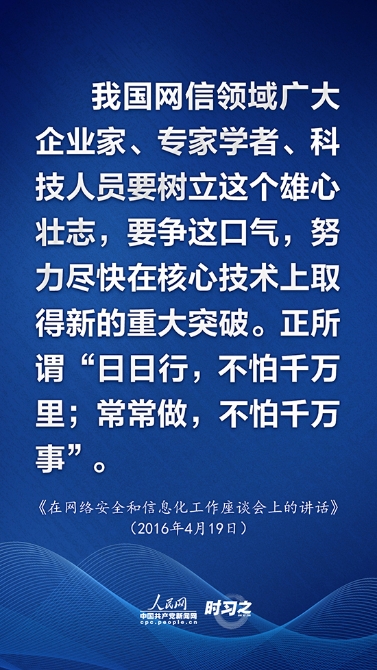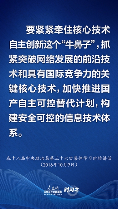 党的十八大以来,以习近平同志为核心的党中央从进行具有许多新的历史特点的伟大斗争出发,重视互联网、发展互联网、治理互联网,统筹协调涉及政治、经济、文化、社会、军事等领域网络安全和信息化重大问题,作出一系列重大决策、实施一系列重大举措,推动我国网信事业取得历史性成就,走出一条中国特色治网之道。人民网·中国共产党新闻网“时习之”栏目梳理了《习近平关于网络强国论述摘编》中有关“加速推动信息领域核心技术突破”的10句金句,与您共同学习。
