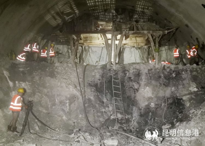 西双版纳隧道位于云南省西双版纳傣族自治州景洪市,全长10.7公里,最大埋深620米,最小埋深20米,穿越澜沧江断裂带及多条断层,围岩破碎、地下水丰富,高风险围岩段占98%,并集高地应力、高地热于一体,溜塌、突涌、大变形等不良地质灾害频发,安全风险高,施工难度,为Ⅰ级高风险隧道。中国铁路昆明局集团滇南铁路建设指挥部组织中交二航局、中铁三局等单位共同承建,有力保障了隧道顺利贯通。