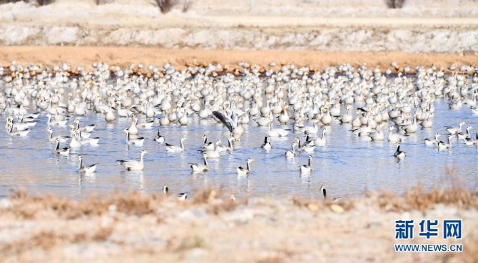 斑头雁在拉萨市林周县境内的河道休憩(2020年11月20日摄)。新华社记者 晋美多吉 摄