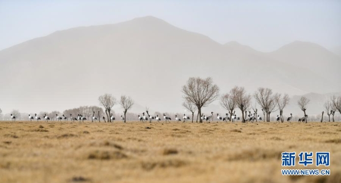 这是栖息在雅鲁藏布江流域的黑颈鹤(2020年3月11日摄)。