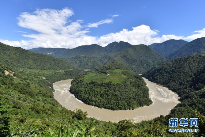 这是西藏林芝市墨脱县境内的雅鲁藏布江果果塘大拐弯(2020年8月31日摄)。新华社记者 觉果/摄