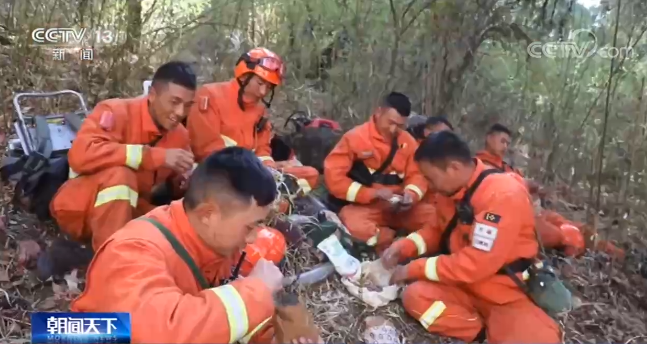 在林子里穿梭6个小时后,队员们在半山腰的丛林里,开始一天的“正餐”,这也是他们一天中难得的休闲时光。