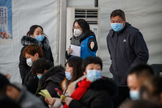 1月26日,在设立于北京市朝阳规划艺术馆的接种点,志愿者引导接种人员在观察区落座留观。新华社记者 刘金海 摄