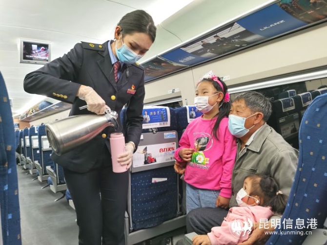 疫情防控方面,昆明局集团对客车能力作充分安排,严格控制列车超员率,加强旅客测温,引导旅客全程佩戴口罩。在昆明南站、昆明站、大理站等客流集中车站积极协调属地防控部门增加疾控、卫生驻守人员。每天安排人员对车站候车室、通道、站台、站房周边等区域进行2次以上喷雾消毒,并安排 700 名随车保洁员开展列车重点部位消毒。积极做好站区商铺等经营网点消毒、冷链食品消费证查验等工作。