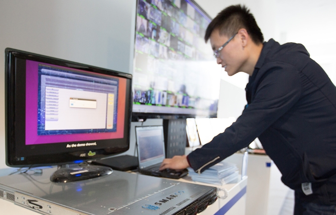 △工作人员在现场演示高通量人工智能一体机的实际应用。