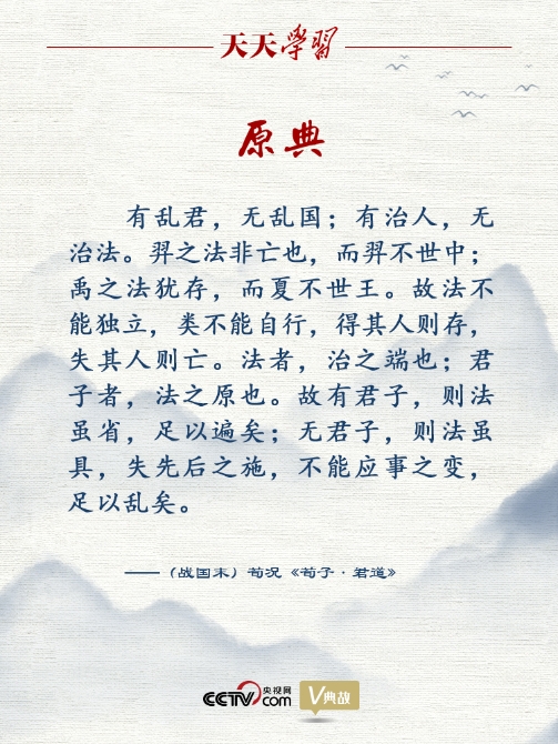 由上述观点可以看出,荀子认为“人治”和“法治”均为治国方略,但两者并非等量齐观。他提出“法者,治之端也”的命题,是把法看成是治理国家的首要条件。