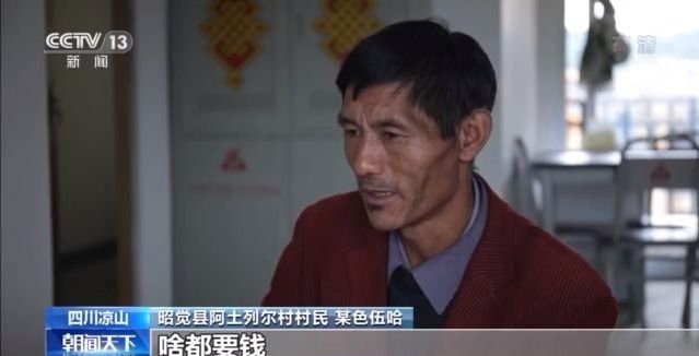 阿土列尔村村民 某色伍哈:(住在)悬崖村的话,多多少少能挣钱,自己生活压力不大,菜都是自己种。在这边,消费是早上买一个白菜,一斤两块五,早上买了三斤早上吃,晚上买三斤晚上吃,就受不了了我。啥都要钱,有些时候我心里特别开心,有些时候我压力大。
