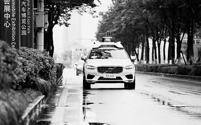 一辆智能网联汽车在路上行驶。新华社发