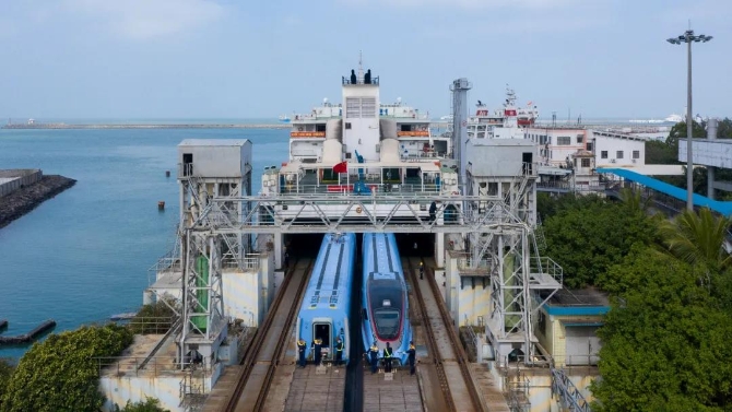 △CR300AF型复兴号动车组“上线”海南岛 图片来源:海南广播电视总台公众号