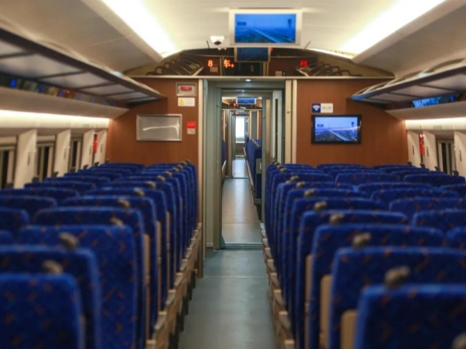 CR300系列列车采用8辆编组,总定员613人,其中一等座48个席位,二等座565个席位。相比于“复一代”的兄弟,CR300系列增加了37个座位。