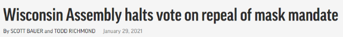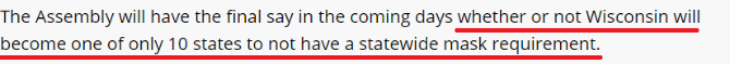虽然看在钱的份上暂时没有表决,但事情还没完。据悉,该州议会最快于本周仍会投票决定是否终止口罩令。而如果最终取消了口罩令,威斯康星州将成为美国仅剩的10个没有实行全州口罩令的州之一。