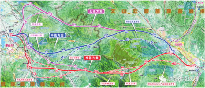 2018年12月,中国铁路投资有限公司发布文山至蒙自铁路勘察设计项目中标公示,中铁工程设计咨询集团有限公司中标文山至蒙自铁路项目勘察设计,这标志着文山至蒙自铁路项目前期工作正式拉开序幕。