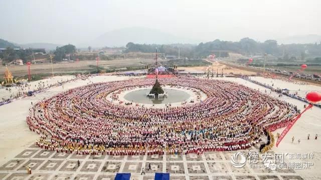 盈江县以丰富的人工场地资源著称,其在各个乡镇都修建了关于开展少数民族传统节日集聚的场所,傣族泼水节就是其中较为典型的代表。最为出众的节日聚集场所非属融合了傣族泼水广场、目瑙纵歌广场、阔时节广场三者为一体的盈江著名旅游景点—允燕山景区。通过了解得知,在过去20到30年左右人们主要在街心花园广场进行泼水节狂欢活动,同时在各街巷进行小型群聚活动。随着盈湖公园的建设完工,活动范围也得到进一步扩大。近年来,政府大力支持少数民族文化发展,扶持地方经济壮大,于是在多个少数民族聚居的村镇建设了服务于节日庆典的广场。充足的空间不仅为当地人民欢度佳节提供了条件,而且越来越吸引着大批的游客参与到泼水节中。据CCTV央视新闻消息,2017年4月14日,在云南省盈江县泼水节上场面极为壮观。13591人同时跳起傣族集体舞蹈《嘎伴光》,据统计,此次云南省盈江县泼水节上,集体跳广场舞人数达到一万三千五百九十一人,创下了人数最多的集体舞世界纪录。