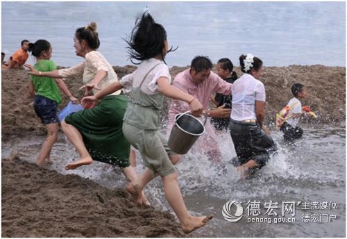 傣族泼水节是中国、柬埔寨、泰国、缅甸、老挝等地区傣族的新年,亦是阿昌族、德昂族、布朗族等民族共同的节日。泼水节源于印度,是古婆罗门教的一种仪式,后为佛教所吸收,约在公元十二世纪末至十三世纪初经缅甸随佛教传入中国云南傣族地区,逐渐融合、演化、传承下来的习俗,至今已有七百多年历史。泼水节一般在清明节后7天开始,即傣历六月中旬(公历4月13 日至15日)举行,为期 3~4天。第一天是傣族的“除夕”,第二天是“空日”,第三天是“元旦”。据相关文献《云南德宏傣族泼水节非物质文化遗产发展研究》可知,现代泼水节受到民族旅游和现代化的巨大影响。“在最传统的庆祝方式中,只是简单的泼水和舞蹈活动。到了20世纪60年代左右增加了赛龙舟、放高升、堆沙、丢包等活动。经过长期的演化及传承,现在泼水节的庆祝活动丰富多彩,已演化成一个全面体现傣族传统文化的综合舞台。现今的泼水节分成以村寨为单位的传统泼水节和政府组织的泼水节。”