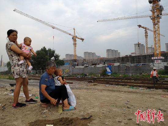 2019年7月4日,北京东四环外,新的星火站(现为朝阳站)建设工地旁,附近的居民隔着围墙和铁路线围观。中青报·中青网记者 陈剑/摄
