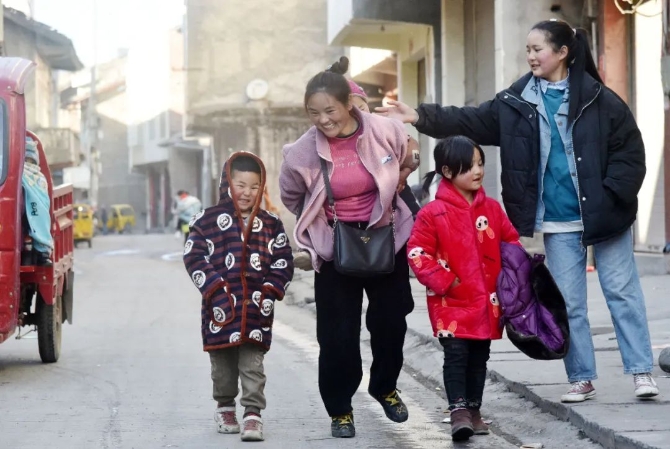 1月22日,巴木玉布木和孩子们行走在集镇上。周科摄