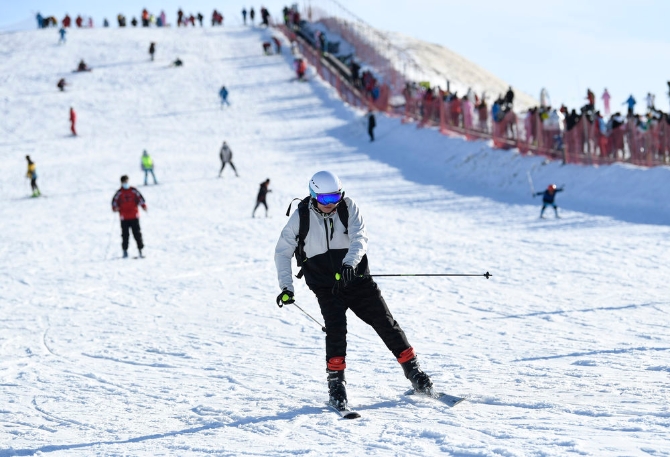 1月30日,市民在宁夏银川市阅海滑雪场体验滑雪运动。