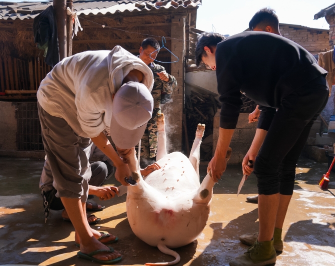 准备杀猪饭 记者徐毅杰/摄