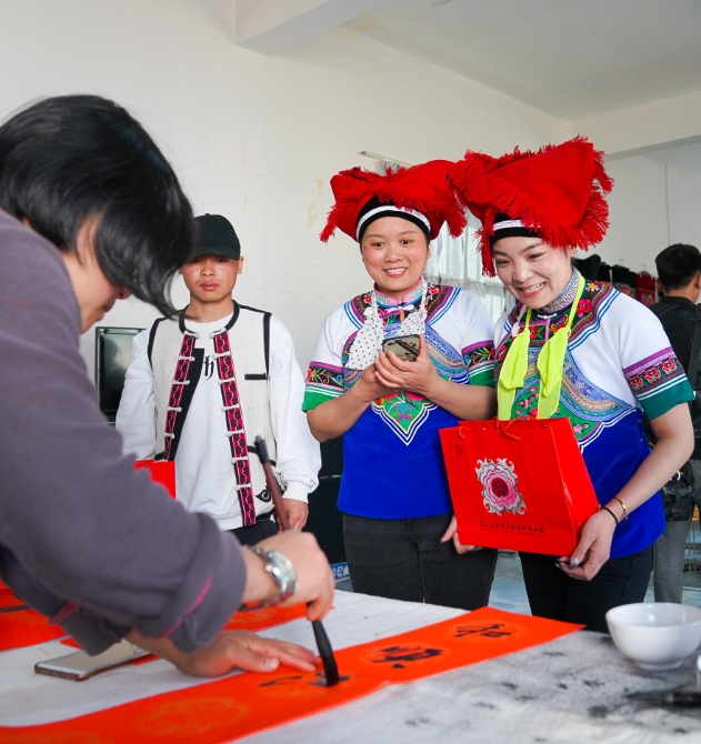 砚山县文联书法家协会为村民写“万事如意”联 记者徐毅杰/摄
