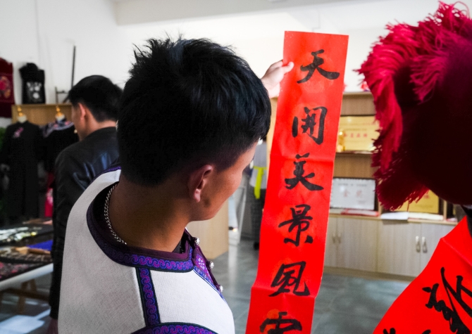 念春联 记者徐毅杰/摄