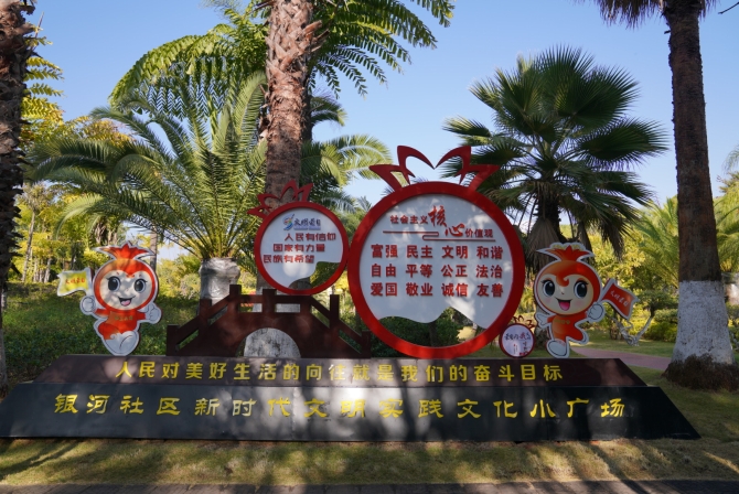 银河社区成立于2002年10月26日,位于蒙自新城区,辖区面积2.11平方公里,有省州市驻区单位16家、私营企业82家,居民总户数5022户、总人口14141人,社区党总支下辖4个党支部,有正式党员226名。2017年10月,试点推行社区“大党委”,把驻区16个单位21个党组织、571名党员联结起来,构建纵向到底、横向到边的城市基层党建新格局。