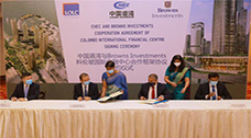 2月4日,在斯里兰卡科伦坡,三架参加阅兵式的飞机经过市政大楼上空。新华社记者唐璐/摄