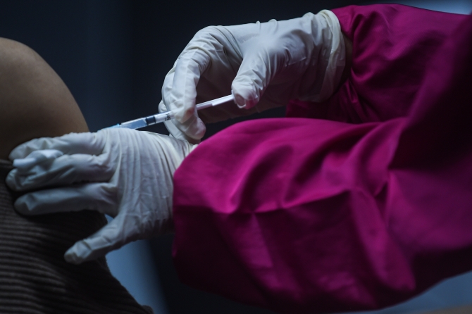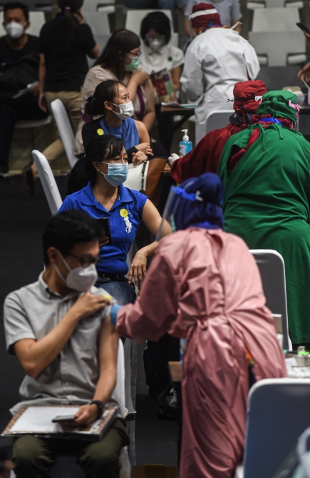 ↑ 2月4日,医务工作者在印度尼西亚雅加达接种中国科兴公司的新冠疫苗。