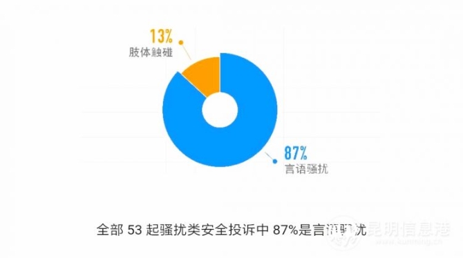 在全部53起骚扰类安全投诉中,87%是言语骚扰,13%是肢体触碰,如触碰手部、腿部、腰部。这些投诉经查实后,平台均对骚扰方进行了暂停服务或永久停止服务的处理。