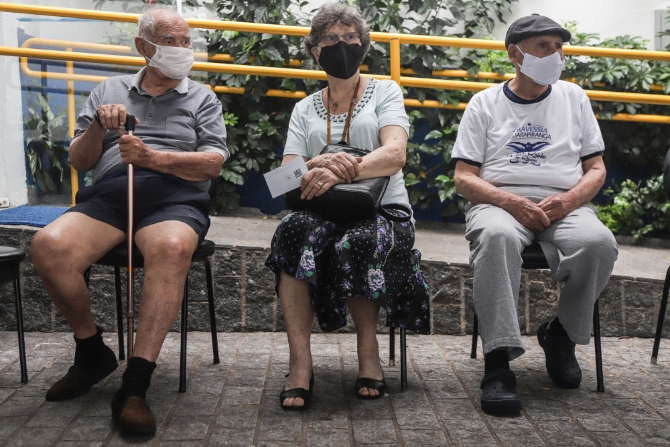 2月5日,巴西圣保罗市的老人等待接种克尔来福疫苗。