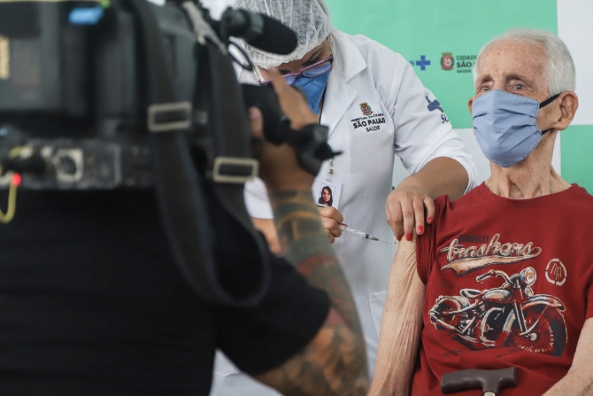 巴西最大城市圣保罗5日开始为90岁及以上的老年人接种中国科兴公司的克尔来福新冠疫苗。