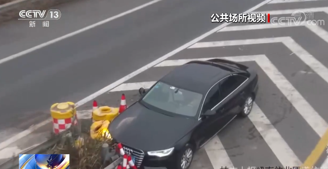 再来看前些天发生在二广高速转沪昆高速的这起事故,一辆小车原本在主干道上正常行驶,行至梽木山枢纽处时,忽然向右偏离压着导流线行驶,其间并未降速,直至撞向隔离墩和匝道口护栏。