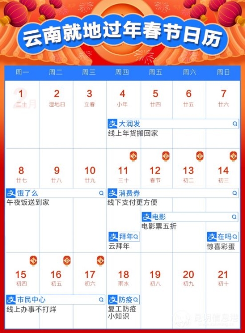云南就地过年春节日历来了 上万家机构春节在线不打烊
