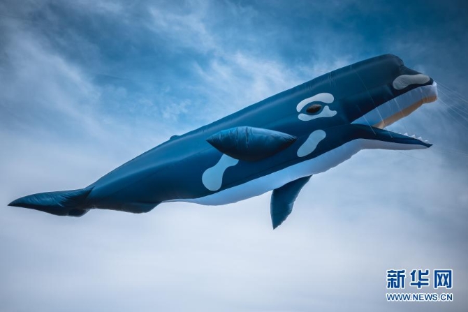2月6日在新西兰惠灵顿北部小镇奥塔基海滩上拍摄的风筝。新华社发(张健勇摄)