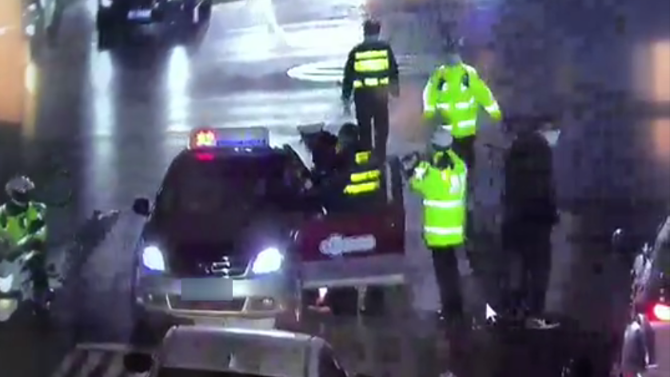 警辅张双和三名新训警辅在执勤巡逻过程中
