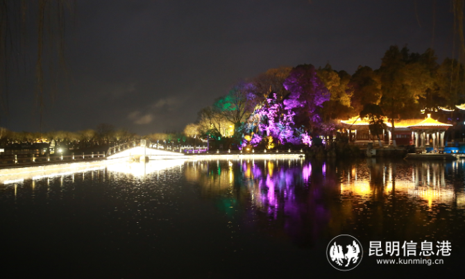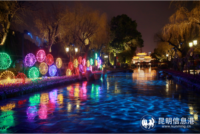 昆明信息港讯 记者杨雁 2月8日—3月8日,大观公园与昙华寺公园共同举办“年味大观 国色天香”第二十五届郁金香、牡丹花展。游客不仅能在白天观赏到郁金香、牡丹竞相绽放的盛景,更能在夜间光影中欣赏到别样花姿。崭新的“夜大观”景观经过历时3个月改造,于大年初一至初六期间向广大游客绚丽开放。