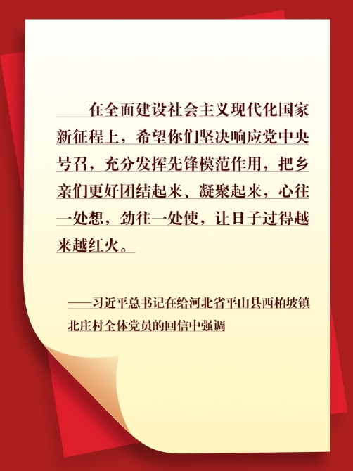 团结就是力量,这力量是铁,这力量是钢。日前,习近平总书记给河北省平山县西柏坡镇北庄村全体党员回信,勉励他们把乡亲们更好团结起来、凝聚起来,心往一处想,劲往一处使,让日子过得越来越红火。