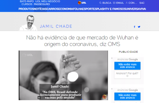 巴西发行量最大的报纸《圣保罗页报》当地时间9日在其官网刊文报道说,中国-世卫组织新冠病毒溯源研究联合专家组召开新闻发布会宣布,没有证据表明新冠病毒起源于武汉华南海鲜市场,也没有证据表明在2019年12月之前新冠病毒已在武汉传播。文章还引用专家组组长彼得·安巴雷克的表态,称新冠病毒源于实验室泄露“极不可能”。同时,有专家还指出,新冠病毒可能在武汉首批病例被发现前数周就已在世界其他地区传播。