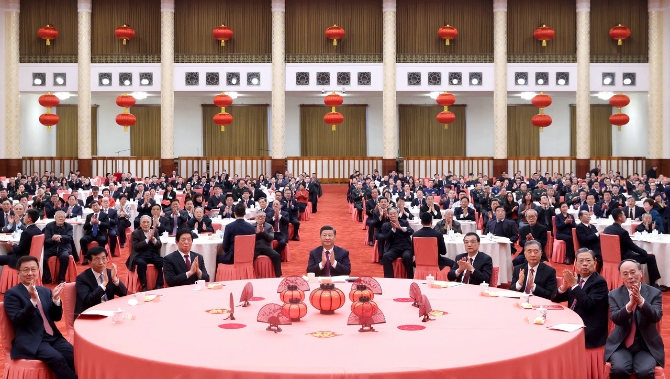 党和国家领导人李克强、栗战书、汪洋、王沪宁、赵乐际、韩正、王岐山等出席团拜会,李克强主持。
