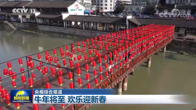 牛年沾牛气,在南京江宁金陵牛文化村,以牛为主题的彩绘随处可见,书法家们挥毫泼墨,把春联、福字送到村民家门口。在安徽宿州,社区居民贴上自己剪好的窗花,象征新的一年红红火火。在杭州余杭塘栖古镇,一串串大红灯笼点缀在水乡的白墙黑瓦间,家家门前挂起酱鸭、腊肠、鱼干等年货美食,这种寓意团团圆圆的肉圆尤其受到青睐。
