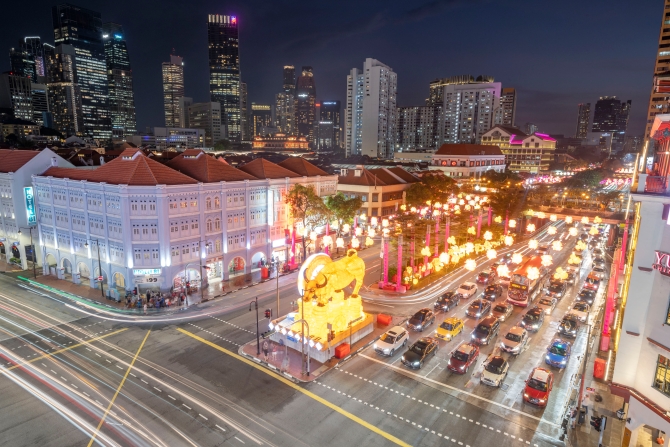 新加坡牛车水亮起农历新年灯饰