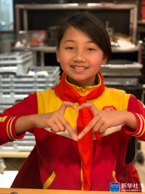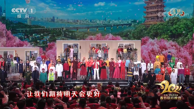 湖南省祁东县启航学校留守儿童合唱团的张焱林、肖恩、周诗琪、陈雨馨在央视春晚舞台上表演节目《明天会更好》(视频截图)。