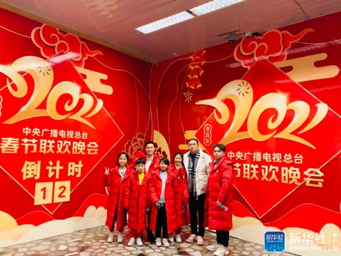 孩子们和老师在央视春晚彩排现场留影。(受访者供图)