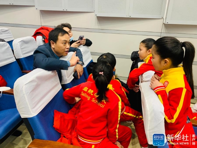 王育霖教授在春晚后台给孩子们做指导。(受访者供图)