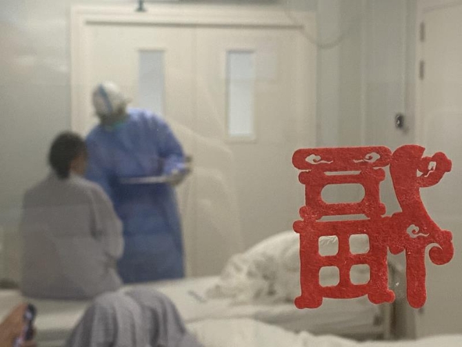 临近24点,北京东北五环外的地坛医院,隔离病房里看不见外面闪亮的焰火,只能听到隐约的声响。辞旧迎新的时刻终于又到了。