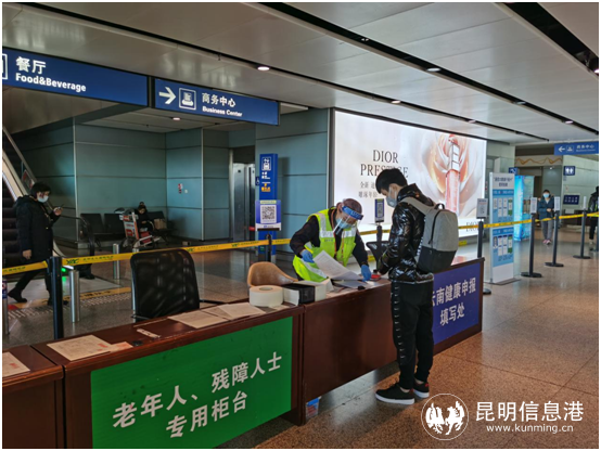昆明机场到港服务包括:老年旅客自下机到行李提取由地面服务代理提供服务,均设置自动步道;提供提前电话预约爱心电瓶车运输服务,并根据航班达到高峰时段,不间断巡视为有需求的老年旅客提供服务;达到出口健康码填报处设有纸质填报台并配置现场工作人员,协助老年旅客完成到港健康码填报手续。