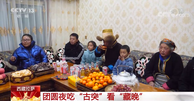 今年的农历春节和藏历新年恰好重合,“双节”到来,拉萨的年味儿更加浓厚。按照藏族传统习俗,藏历十二月二十九日,也就是2021年2月10日晚上,是吃团年饭“古突”的日子,也叫“古突之夜”。按照当地习俗,先用牛肉丁和萝卜丝煮上一锅汤,等汤熬好以后,再在汤里煮面疙瘩,每个面团里都包了不同的材料。15分钟后,热气腾腾的“古突”端上了桌。吃完“古突”,大家按照习俗点燃一把青稞秆结成的火把,进行传统的驱邪祈福仪式,祈求来年吉祥、安康。喝酥油茶,看西藏春节藏历新年联欢晚会,其乐融融。