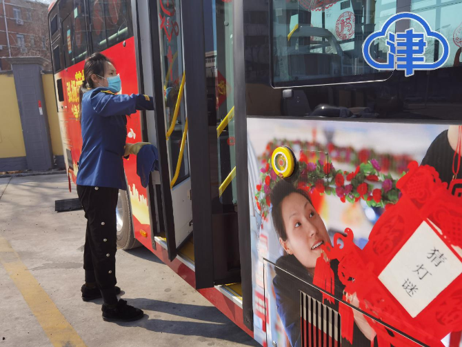 大年三十,天津市公交集团第一客运有限公司5路公交车首班车4:35分准时发车,驾驶员石霞和往常一样凌晨4:00多到达车队,做好运营前的安全朝向,检查车辆并对车辆进行全方位清洁消毒,然后才开始一天的运营工作。正是有着一个个石霞一样的公交人默默坚守,用心经营流动的“家”,才保障了乘客们的团圆欢聚。