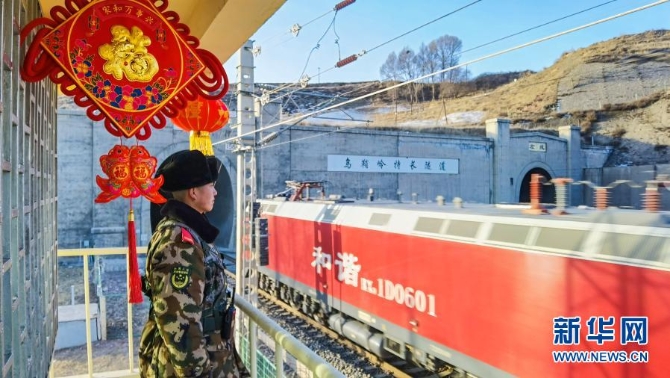2月12日,武警甘肃总队武威支队执勤三中队官兵在兰新铁路乌鞘岭特长隧道哨位执勤。新华社发(侯崇慧 摄)